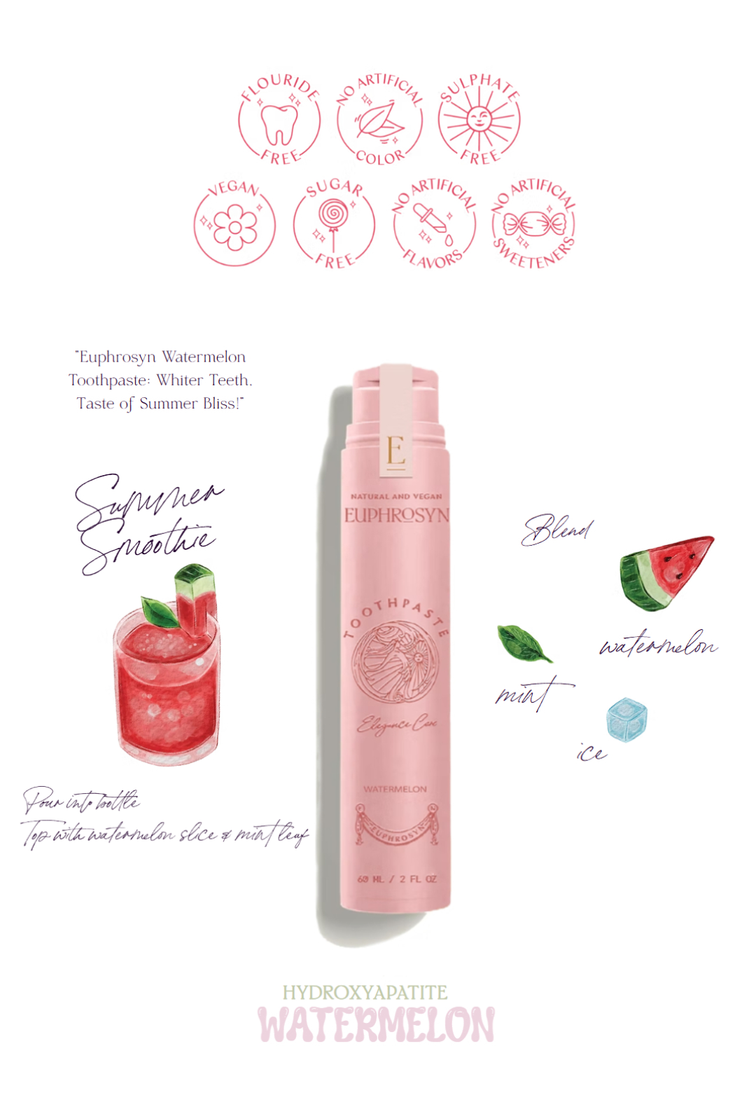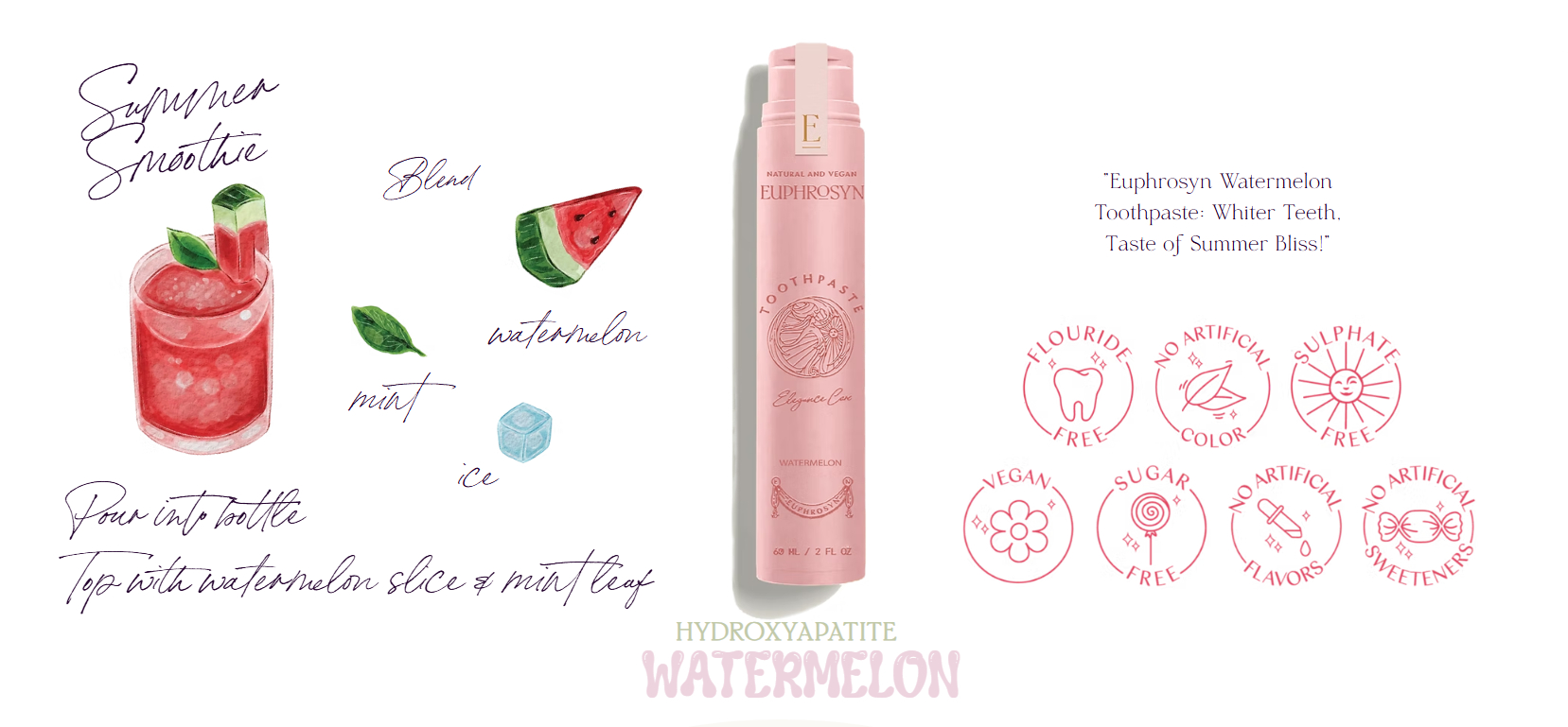 Purified Aqua, Calcium Carbonate, Silica (Friction Type), Glycerin, Hydroxyapatite, Hydrated Silica, Xylitol, Citrullus Lanatus Fruit Extract, Xanthan Gum, Potassium Sorbate, Sodium Benzoate, Sodium Cocoyl Glutamate, Tocopheryl Acetate, Aloe Barbadensis Leaf Juice, Limonene, Potassium Gluconate